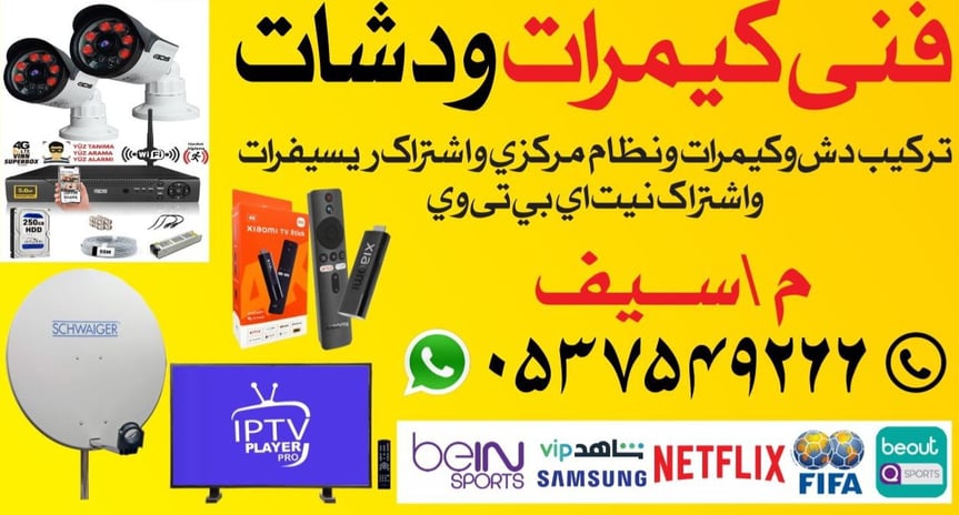 تركيب دش و كيمرات و نظام مركزي و اشتراك ريسيفرات و اشتراك نيت اي بي تى وي